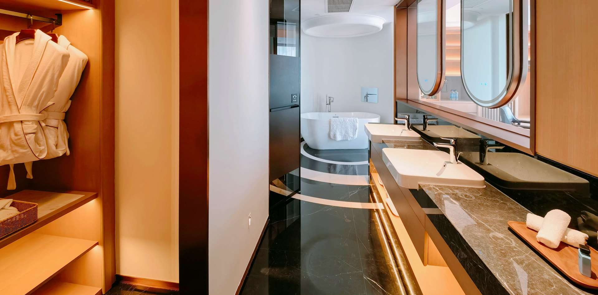 The Art of Living Our 55–75sqm luxury rooms are designed as galleries of comfort, featuring panoramic windows that bring the Imperial city into your room. Indulge in an unparalleled sleep experience with Swedish DUXIANA bedding, complemented by premium Villeroy & Boch, Hansgrohe, and LANVIN amenities.